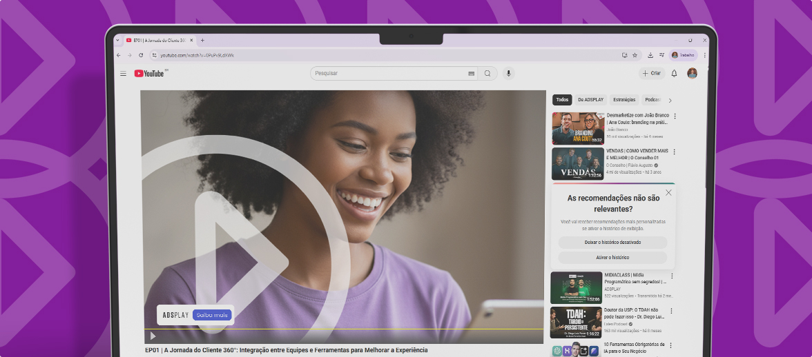 Com milhões de usuários e visualizações diárias, o YouTube é um canal estratégico para ações digitais. O canal permite conectar marcas com o público certo por meio de diferentes modelos de anúncio em vídeo, combinando alcance massivo com segmentação baseada em dados e comportamento de consumo.